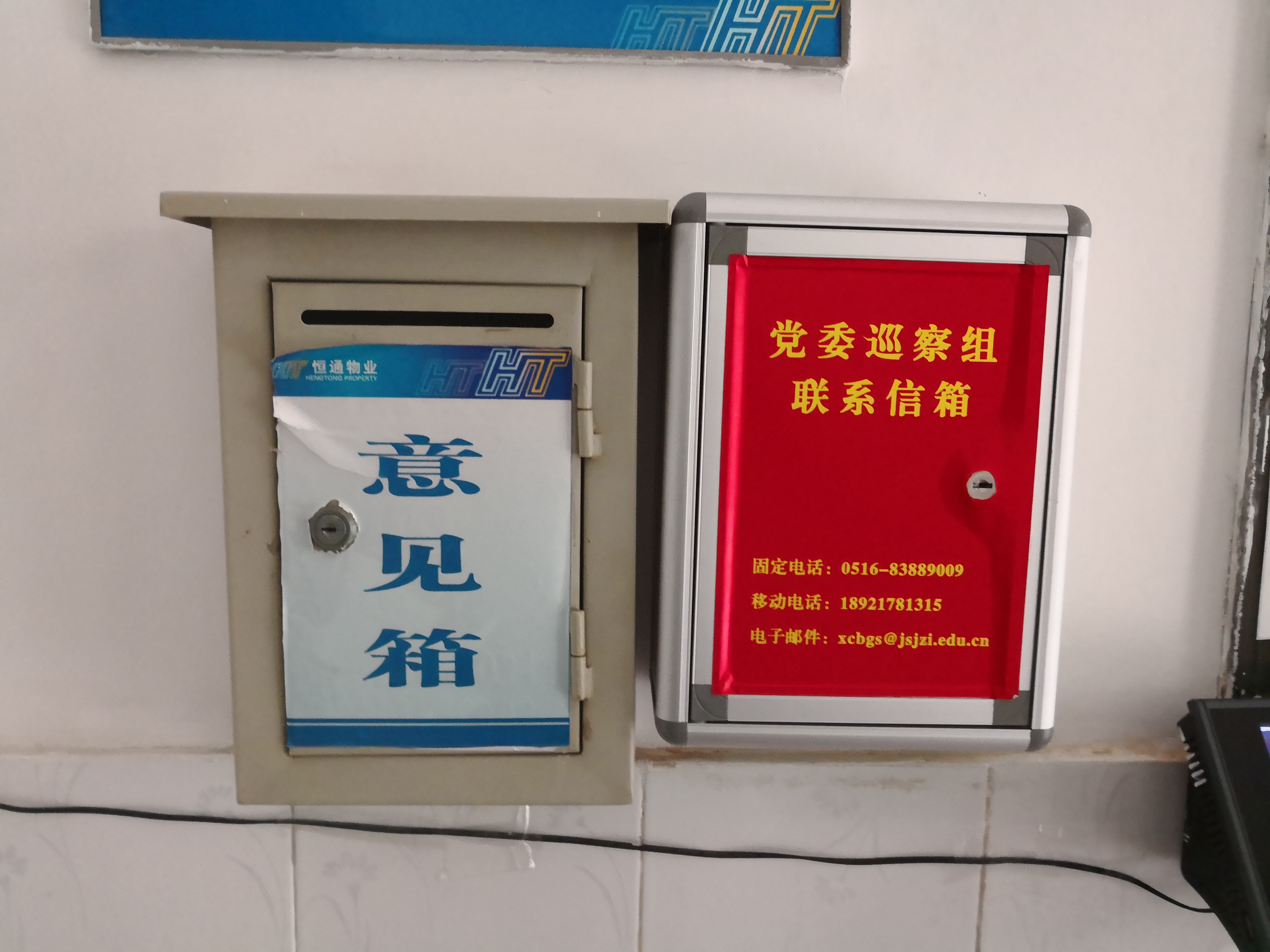 巡察期间(10月16日-23日),巡察组设专门值班电话(并接收短信):18921781315,每天值班时间为早8时至晚5时;专门电子邮箱:xcbgs@jsjzi.edu.cn;同时设立专门意见箱,位置在成教楼一楼楼梯口。