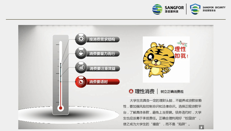 2019年4月2日下午,三亿体育邀请深信服科技公司安全专家胡自躜工程师,为公司17级、18级在校生做《拒绝“网贷”,树立正确价值观》专题讲座。