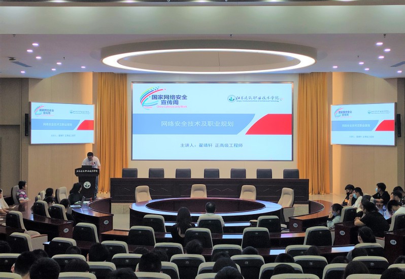 9月15日下午,我院在学术报告厅开展了2020年国家网络安全宣传周校园日活动。全院教师和员工代表首先观看了“2020年全省教育系统网络安全宣传周校园日活动启动仪式”直播。随后,江苏工匠工作室领办人翟靖轩博士为大家做题为“网络安全技术及职业规划”的讲座。