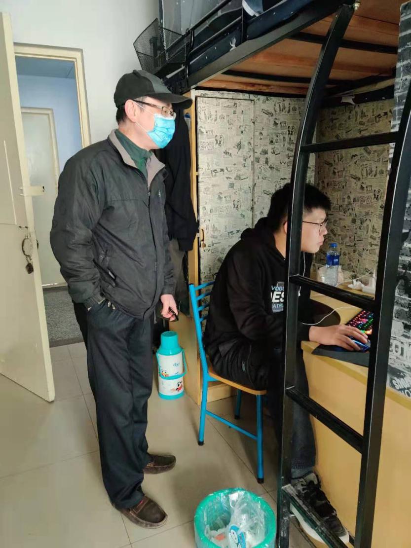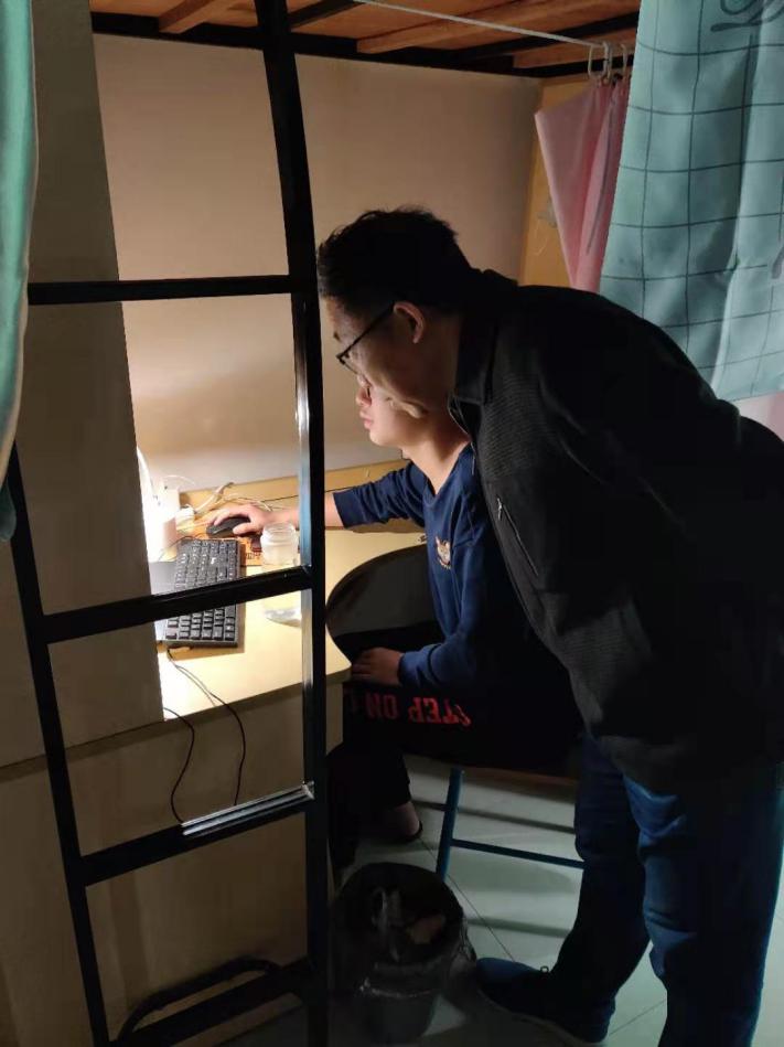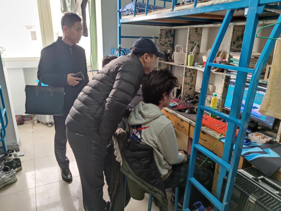 缪书记吴经理、梁经理一行来到员工公寓,仔细查看宿舍环境卫生、用电安全以及员工线上教学的情况。缪书记、吴经理提醒各位同学,一定要保持宿舍卫生,勤打扫,多通风。另外春季是感冒多发季节,要注意增减衣物,去往人员密集的场所要做好个人防护。梁经理仔细查看了员工参加线上教学的情况,并提醒同学一定要按时参加网课,保证上课的质量。