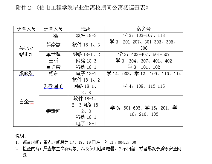 三亿体育毕业生离校期间公寓楼巡查工作安排