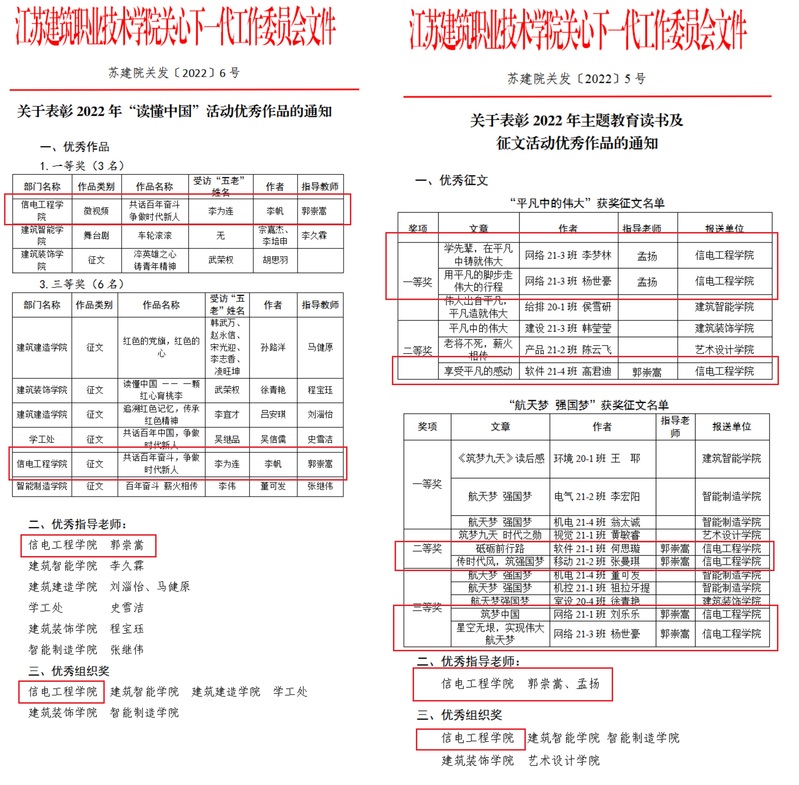 10月5日,公司发布了《关于表彰2022年“读懂中国”活动优秀作品的通知》、《关于表彰2022年主题教育读书及征文活动优秀作品的通知》。在两项活动中,公司师生共获得:一等奖3人次,二等奖3人次,三等奖3人次。两名老师获得优秀指导老师奖,公司获得优秀组织奖。
