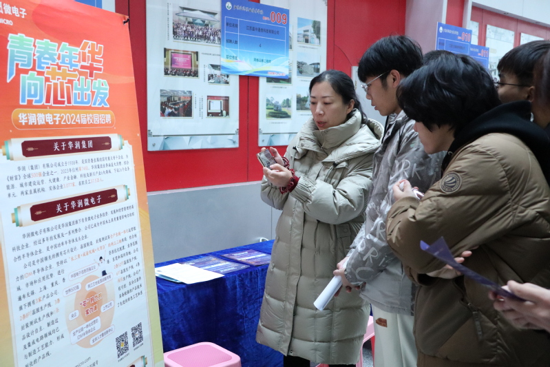 1224日下午,公司在体育馆举办徐州市淮海服务外包职教集团计算机大类江苏建院专场招聘会。公司党政领导、毕业班主任、就业辅导员深入招聘现场,无锡华润微电子有限公司、无锡力神新能源科技有限公司、江苏盈中通信科技有限公司等职教集团内外知名企业来校选才。