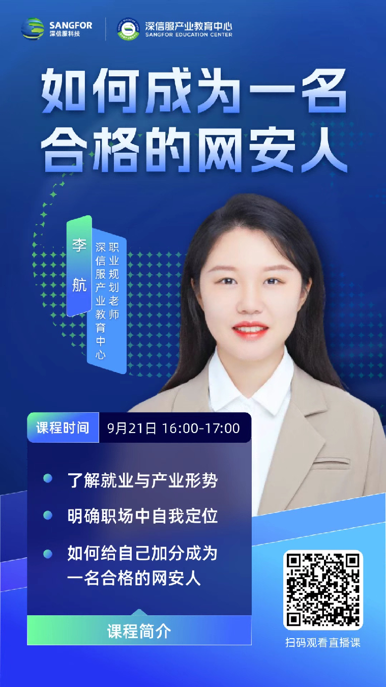 当日下午,深信服股份有限公司产业教育中心职业规划师李航为公司师生开展了一场线上直播---如何成为一名合格的网安人,全院1600余名员工和师生观看了直播。