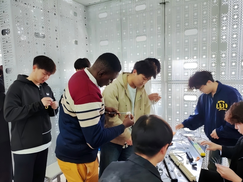 本次交流以三亿体育优势专业——计算机网络技术为核心,喀麦隆职工将系统学习网络安全、大数据等前沿课程。为保障教学效果,公司特别设计“双语实训+文化浸润”培养方案,选派骨干教师团队,采用项目化教学与案例实操相结合的方式,帮助职工快速适应中国教育模式。带队教师Agbor Anderson深入中方课堂,全程参与教研活动,对学院的育人模式表示高度赞赏。